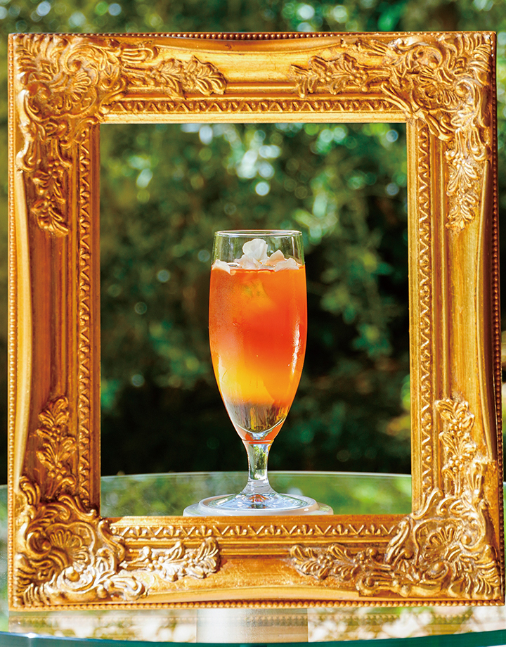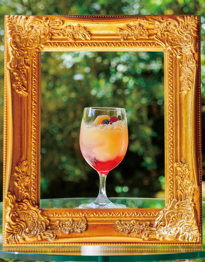 ハイビスカスとローズの深紅のシロップに桃のピュレ・グラニテを加えた夏らしい味わいです。