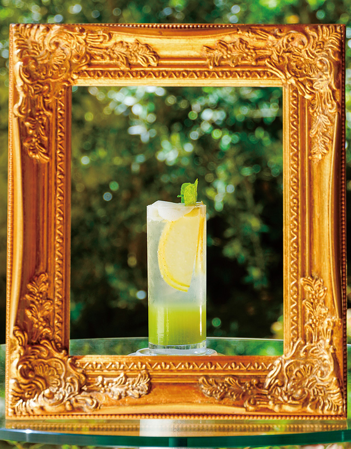 炭酸で割ったりんごジュースに青りんごのピュレとエスプーマを重ねたりんご尽くしの爽やかなソーダ。