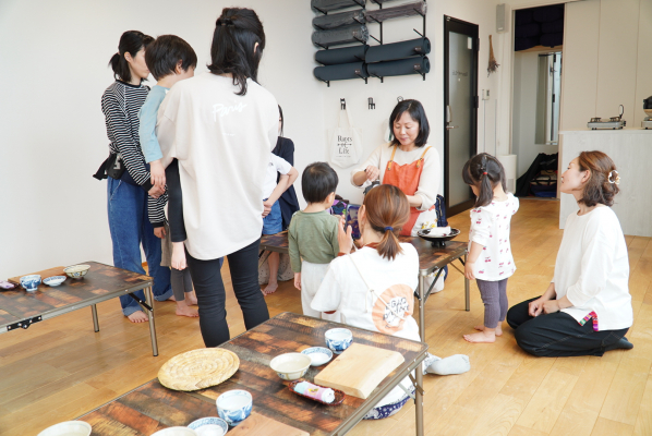 後半は、「風の薫り」代表の浅野恭子さんによる食育ワークショップ。「塩むすび」の作り方をレクチャーいただき、子どもたちは自分の手でおむすびを一生懸命に握りました。