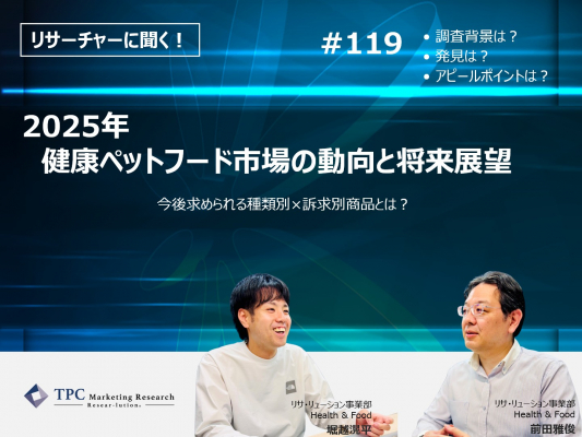 この程、TPCマーケティングリサーチ株式会社(本社=大阪市西区、代表取締役社長=松本竜馬)は、『2025年 健康ペットフード市場の動向と将来展望』について、弊社リサーチャーの堀越滉平、前田雅俊のインタビュー記事を2025年5月27日に公開したことをお知らせいたします。