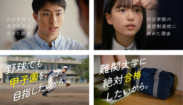本CMは2パターン構成で、四谷学院の通信制高校に決めた理由を、生徒のリアルな変化を家族の気づきとともに描いています。
