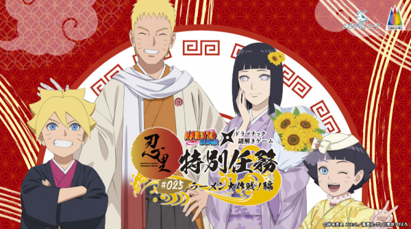 兵庫県立淡路島公園アニメパーク「ニジゲンノモリ」の人気アトラクション「NARUTO&BORUTO 忍里」では、「うずまきナルト」と「うずまきヒナタ」、その子どもの「うずまきボルト」、「うずまきヒマワリ」の幸せな家族の日常を体感できる謎解きゲーム『NARUTO-ナルト-』×ドラマチック謎解きゲーム 『忍里特別任務 #025ラーメン大作戦!編』を2025年6月28日(土)~1月11日(日)の期間限定で開催いたします。ついに、“うずまきナルト一家”が主役となる特別任務が登場!激動の運命に巻き込まれる前の、“うずまきナルト一家”の平穏な一日。ヒマワリの誕生日を祝うために、ラーメン一楽の秘伝のレシピの解読に挑戦するナルト、ヒナタ、ボルト。レシピを解読し、ヒマワリを喜ばせることはできるのか?ファン待望の「NARUTO&BORUTO 忍里」特別任務の最新作がいよいよ開始となります!“うずまきナルト一家”の心温まるオリジナルストーリーを楽しみながら、仲間と一緒に謎解き任務に挑戦しよう!