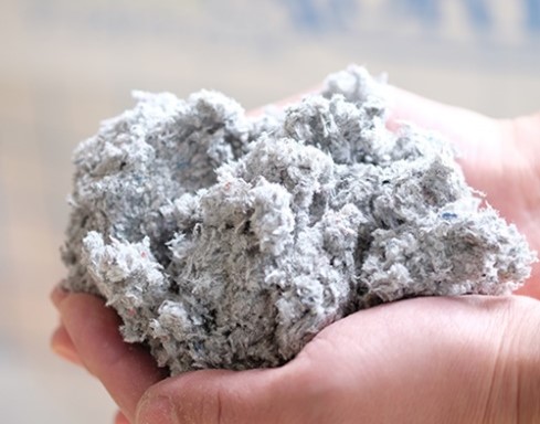 新聞紙を主原料とする綿状の木質繊維系断熱材(セルロースファイバー断熱材)です。木質繊維系断熱材は、断熱性だけでなく、調湿性・吸音性・防火性などにも優れており、熱(溶解・乾燥)、水(洗浄・冷却)なども一切を使用せず、電気エネルギーのみを用いて製造され他の断熱材に比べ製造時のエネルギー消費量が圧倒的に低いのが特長です。中でも当社のデコスファイバーは製造時CO2排出量国内最小、国内の建築用断熱材で唯一エコリーフを取得するなど、環境性能の高い断熱材です。