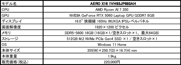 https://www.gigabyte.com/jp/Laptop/GIGABYTE-AERO-X16-EG61H