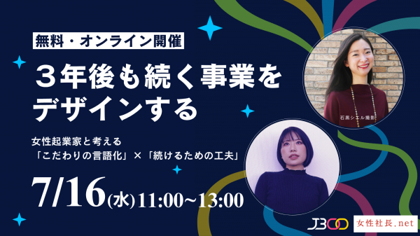 国内最大級の女性経営者データベースサイトを運営する女性社長.net((株)コラボラボ企画・運営 本社:東京都千代田区 代表取締役:横田響子)は、2025年7月16日(水)に女性経営者・個人事業主を対象としたオンラインセミナー「3年後も続く事業をデザインする――女性起業家と考える『こだわりの言語化』×『続けるための工夫』」を開催いたします。