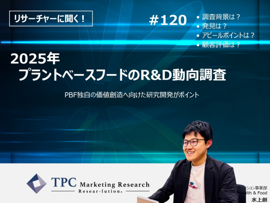 この程、TPCマーケティングリサーチ株式会社(本社=大阪市西区、代表取締役社長=松本竜馬)は、『2025年 プラントベースフードのR&D動向調査』について、弊社リサーチャーの水上創のインタビュー記事を2025年5月28日に公開したことをお知らせいたします。