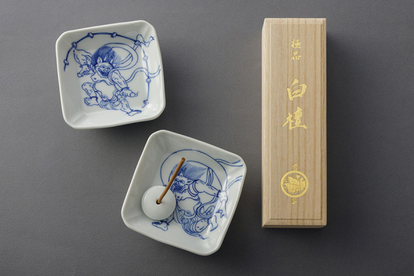 極品の白檀が届きました。お世話になっている方へ、風神雷神の豆皿と合わせてご贈答用におすすめです。