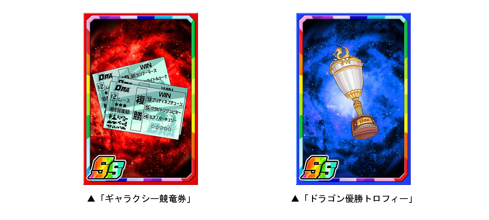 ダンジョンのボスモンスターを倒すと、まれに新たな限定子分カード「ギャラクシー競竜券」「ドラゴン優勝トロフィー」が手に入ります。限定子分カードは複数枚集めると進化ができ、子分スキルの効果が強力になります。