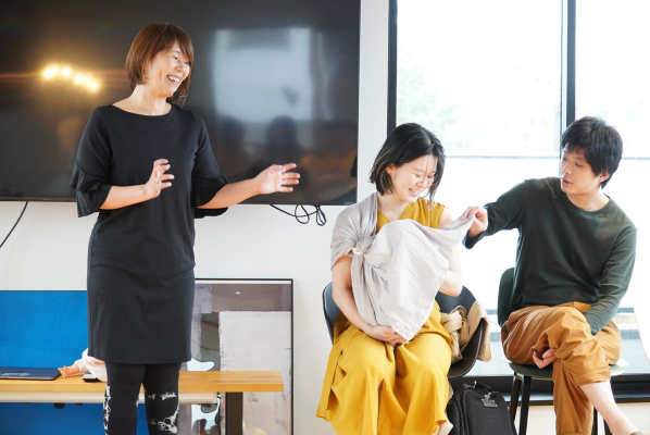 後半では、一般社団法人ボディセンス・インスティテュート代表理事の高橋由紀が、赤ちゃんの抱っこや抱っこ紐などの育児道具の選び方や正しい使い方についてもレクチャーしていきました。