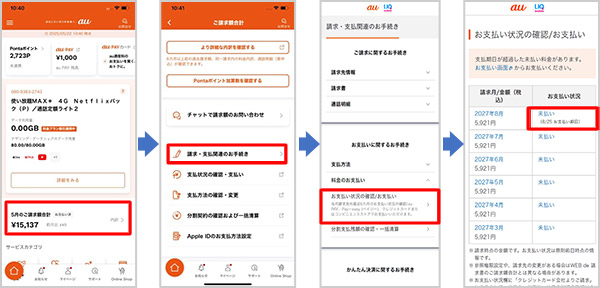 ・「My au」アプリ・「My UQ mobile」アプリの場合