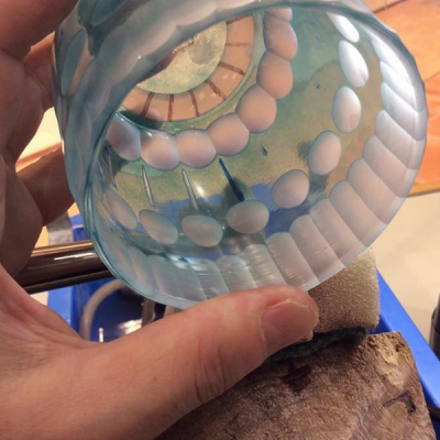 横浜元町で生まれた「元町切子」。通常分業である、器の制作「吹きガラス」と「切子制作」。元町切子は作者大槻洋介が自身でガラスを吹いて作った酒盃に、切子を施しております。独自の色彩と持ちやすさも考慮したデザインの「元町切子」の制作実演を行います。