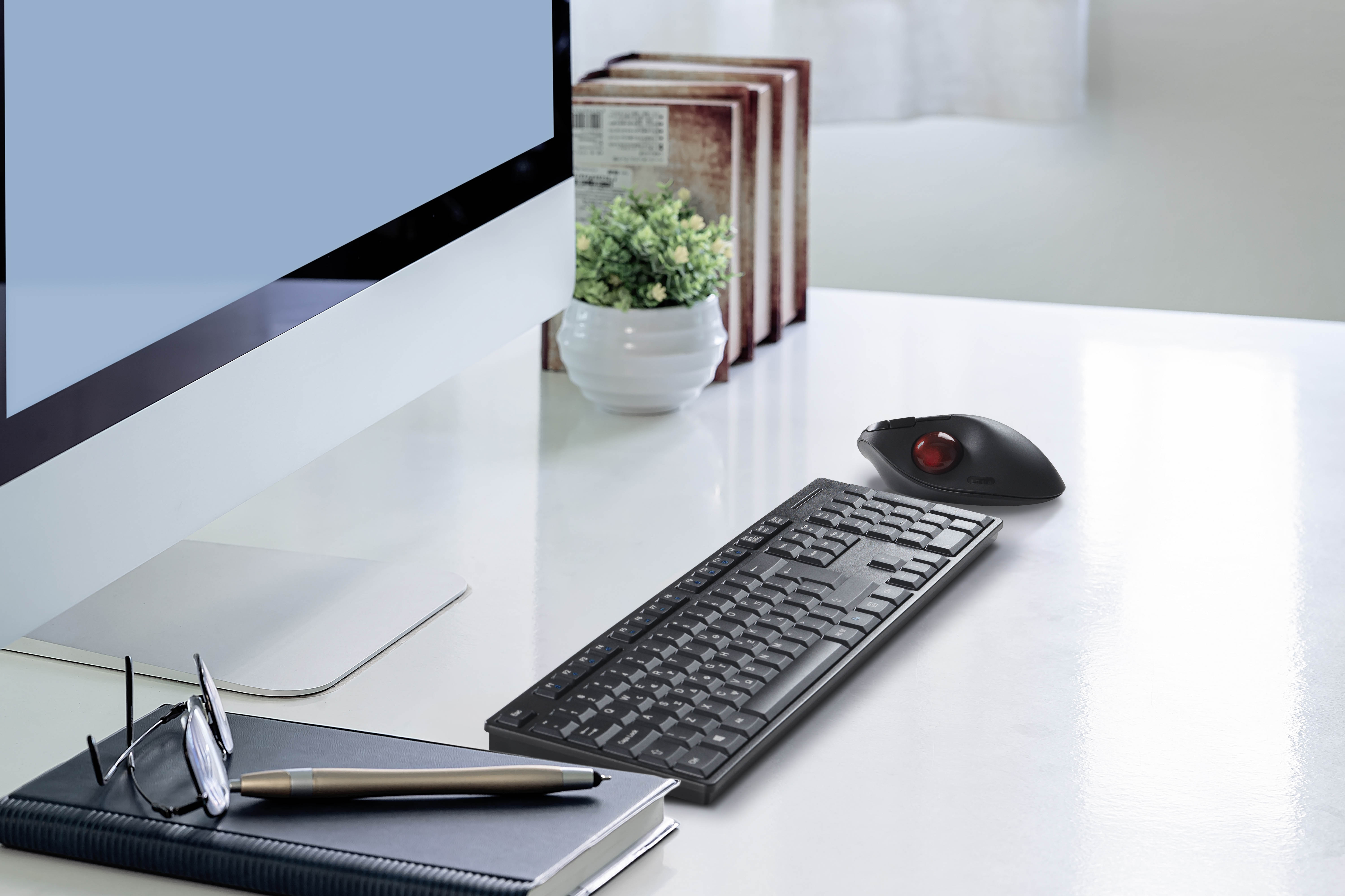 Pro Fit(R) Ergo TB450 EQ トラックボールはマウスから移行しやすい設計をトラックボールに採用し、人間工学に基づいてユニークな設計に仕上げました。Bluetooth(R) LE接続および2.4GHzワイヤレス接続で様々な接続オプションがあり、プラスチック素材の50%にリサイクルされた再生プラスチックを使用しています。Pro Fit(R) Ergo EQ TB450は特許を取得したボール取り出しボタンを搭載し、お手入れ時には簡単にボールを取り出すことができます。また光学トラッキングテクノロジー採用で緻密な操作を可能にします。