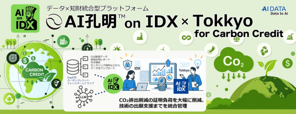 企業データとAIの利活用カンパニー、AIデータ株式会社(本社:東京都港区、代表取締役社長 佐々木隆仁、以下AIデータ社)は、カーボンクレジット市場における取引信頼性の向上と、 削減成果の見える化・証跡化を実現する統合型プラット フォーム 「AI孔明TM on IDX × Tokkyo for Carbon Credit」 の提供を開始いたします。