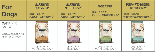 ペットフードに対して、世界で最も厳しい規制を設けているヨーロッパ諸国を含む30カ国以上で愛される、カナダ発スーパープレミアムペットフード、ペットキュリアン社の『NOW FRESH』は、今までご愛顧いただいていたグレインフリーシリーズに加え、この度、「グッドグレービー」シリーズを新発売いたします。