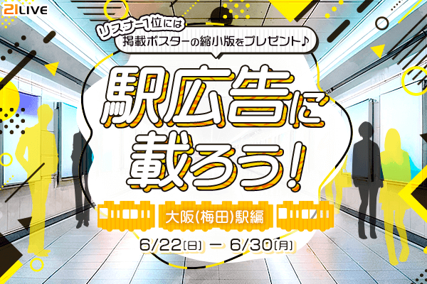 6月22日(日)よりライブ配信アプリ【21LIVE】にて『駅広告に乗ろう~大阪(梅田)駅編~』を開催します。