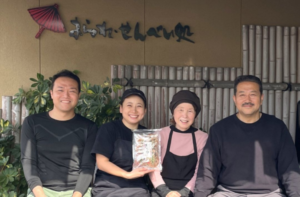 3代目に当たる石上純也さんが家業に就いたのは10年ほど前。今では妻の成菜(あきな)さんと一緒に、父の久嗣(ひさし)さんや祖母のひとみさんから伝統を学びつつ、せんべいの製造を行っています。