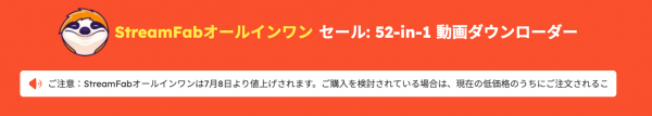 StreamFab All-in-Oneは、2025年7月8日より価格改定が予定されています。新製品のリリースに伴い価格が上昇するため、現在の低価格での購入が強く推奨されています。