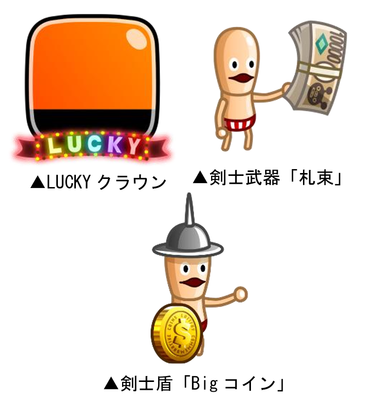 1等(1口):100,000ルビー、LUCKYクラウン、剣士武器「札束」