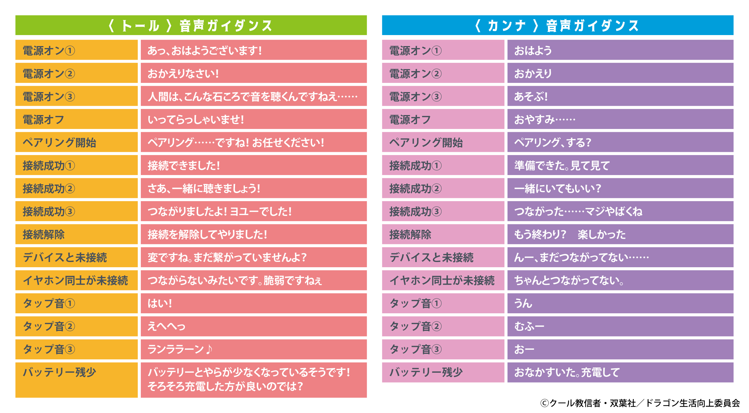 【ワイヤレスイヤホン/音声ガイダンス(搭載ボイス)詳細】
