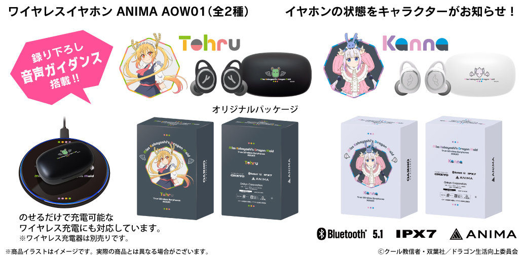 オンキヨー株式会社(所在地:大阪府大阪市、代表取締役社長:大朏 宗徳)は、完全ワイヤレスイヤホン『ANIMA AOW01』をベースにした、京都アニメーション最新作 映画『小林さんちのメイドラゴン さみしがりやの竜』※1コラボレーションモデルを受注販売致します。