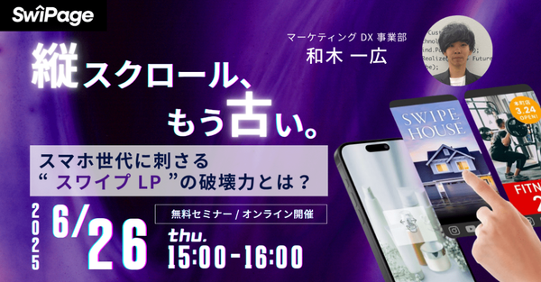 本ウェビナーでは、スマホ特化型のスワイプ LP 作成ツール「 SwiPage (スワイページ)」を徹底解説。まるで SNS のような “ スワイプ操作 ” で、ユーザーを離脱させずに次のアクションへ導く、新しい LP の形をお見せします。