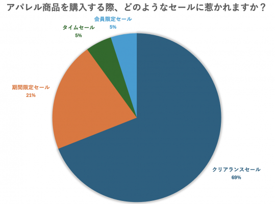・クリアランスセールはそのアイテムのシーズンが終わるタイミングなので、割引率が大きく、かなりお得に買える可能性が高いため好きです。また、セール期間が比較的長く、段階的に割引率が大きくなっていくところも魅力的です。(40代/女性/東京都/自営業、自由業)