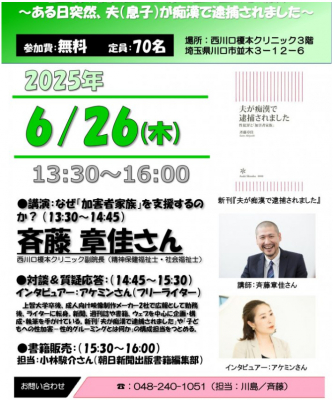 精神科デイナイトケアを行う榎本グループ(港区虎ノ門 理事長:榎本 明)の西川口榎本クリニックで6月26日(木)に無料講演会を開催。