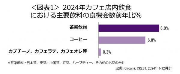 2024年カフェ店内の茶系飲料の食機会数は前年比8.8%増