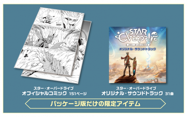 ゲーム本編に加えて追加コンテンツ「スター・オーバードライブ コスメティックパック」と、『スター・オーバードライブ』をスマートフォンや PC でもっと楽しめる2つのデジタルコンテンツを収録。冒険の前日譚を楽しめる「オフィシャルコミック」(151 ページ)と、ゲームプレイの感動や興奮を音楽で楽しめる「オリジナル サウンドトラック」(31 曲)はパッケージ版だけの限定アイテム。追加コンテンツ「スター・オーバードライブ コスメティックパック」にはスキン 6 種類、デザイン 2 種類(1種類に4つのパーツ、合計8パーツ)、およびペイント 50 色が含まれており、ホバーボードを自分の好みにカスタマイズすることができます。