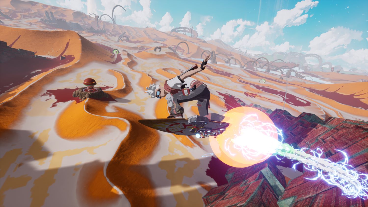 -ホバーボードによる探索とレース:広大な大地を駆け抜け、トリックを決め、手に汗握る戦闘においてはその圧倒的スピードを利用して優位に立とう。