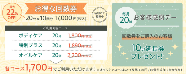 もみの匠 手温プラス名古屋店では、お仕事疲れなど日々の疲れを気軽に解消していただけるようなサービスを提供して参ります。