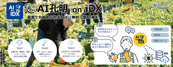 企業データとAIの利活用カンパニー、AIデータ株式会社(本社:東京都港区、代表取締役社長 佐々木隆仁、以下AIデータ社)は、生成AI「AI孔明TM on IDX」の農業業界向けに無料のPoCパッケージメニューを提供いたします。