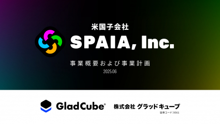 株式会社グラッドキューブ(本社:大阪市中央区 代表取締役 CEO 金島 弘樹 以下:グラッドキューブ)は、2025年5月21日付で公表した米国子会社「 SPAIA, Inc. 」の設立に関して、2025年6月19日(木)、当該子会社の事業概要と今後の展開方針に関する補足説明資料および CEO 金島による説明動画を公開いたしましたので、お知らせいたします。
