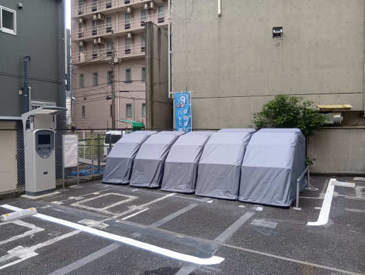 新たにオープンするバイクパーキングは、オープン日から1カ月の期間中、新規で3カ月以上ご契約される方を対象に、1ヶ月分の駐車代が無料となる、トミーバイクパーキング “オープニングキャンペーン”が適用されます。今回は鶴見区鶴見中央に出店、大切な愛車を強力に保護するクールライド社のバイクバーンを使用。従来のようにバイクにカバーを掛けるときの煩わしさがなく、バイクを完全にカバーできます。南京錠をご用意いただければ施錠も可能で、防犯性が大幅にアップします。