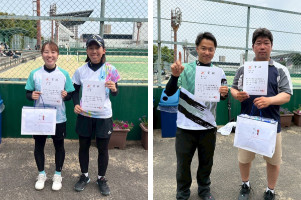 一般女子の部で西松・根岸ペア(ルーセント・ゴーセン)が優勝、男子35歳以上の部で西浦・田口ペア(東大阪ソフトテニス協会・ルーセント)が優勝いたしました。