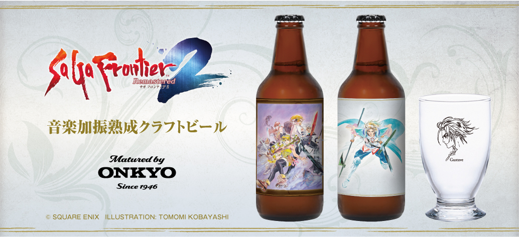 オンキヨー株式会社(所在地:大阪府大阪市、代表取締役社長:大朏 宗徳)(以下、「当社」といいます。)は音響機器ビジネスにおいて長年培ってきた音や振動に関する技術ノウハウを異業種に展開し、新しいビジネス創造を進めております。このたび、株式会社道明寺麦酒(所在地:大阪府藤井寺市、代表取締役:森田 剛浩、以下「道明寺麦酒」といいます。)と共に当社の加振技術を用い、人気RPGゲーム『サガ フロンティア2 リマスター※1』のゲーム内楽曲群から加振器によりビールタンクに聴かせて熟成させる音楽振動熟成のクラフトビールを6月30日(月)15:00から受注販売をすることが決定しましたのでお知らせいたします。なお、本製品は発泡酒です。