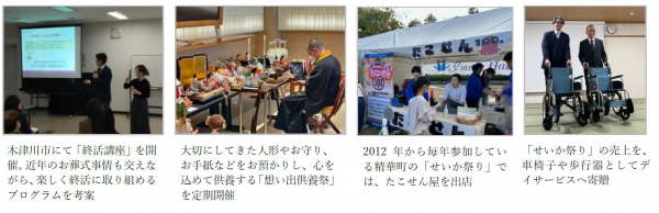 大切な方と過ごす人生を、そしてその大切な方を見送ったのちの日々を、より豊かに前向きに暮らしていくために──。花駒では、3府県13店舗の直営ホールネットワークを活用し、ご本人および家族の終活サポートや、供養等に関する不安への支援のみならず、様々な地域活動にも取り組んでいます。