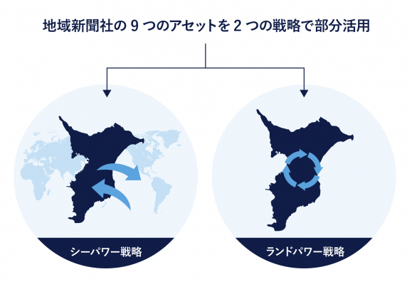 現在当社では、この独自のアセットを部分的に活用した取り組みに注力しており、その活用方法として、千葉県外から県内へ、また県内から県外へと価値を橋渡しする「シーパワー戦略」、および県内で価値循環を図る「ランドパワー戦略」の2つを展開しております。