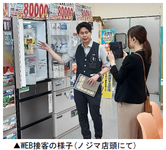 今回ノジマは、東京都からの要請を受け、事業者登録販売店の無い小笠原村の方向けに、東京ゼロエミポイントの即時値引きを受けられるリモートでの購入相談会を実施。本事業の利用を希望された12組のお客様に対し、家電製品の接客販売を実施しました。
