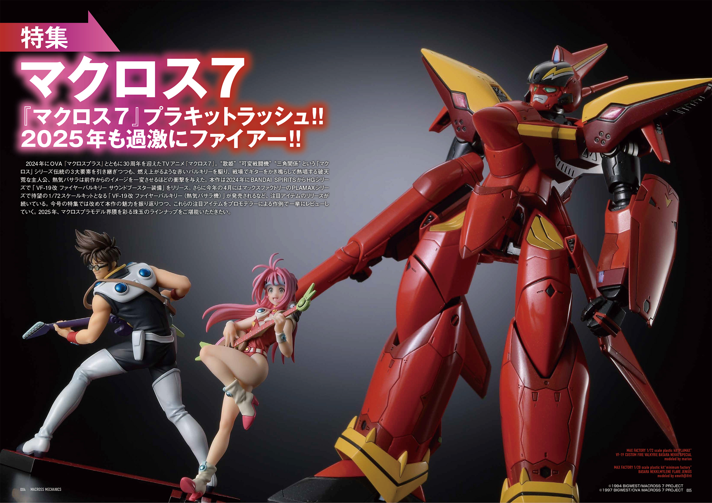 今回の特集は、2024年に30周年を迎えた『マクロス7』! BANDAI SPIRITS「VF-19改 ファイヤーバルキリー サウンドブースター装備」やマックスファクトリー「VF-19改 ファイヤーバルキリー(熱気バサラ機)」といった、『マクロス7』のレビュー作例を一挙にご紹介いたします。