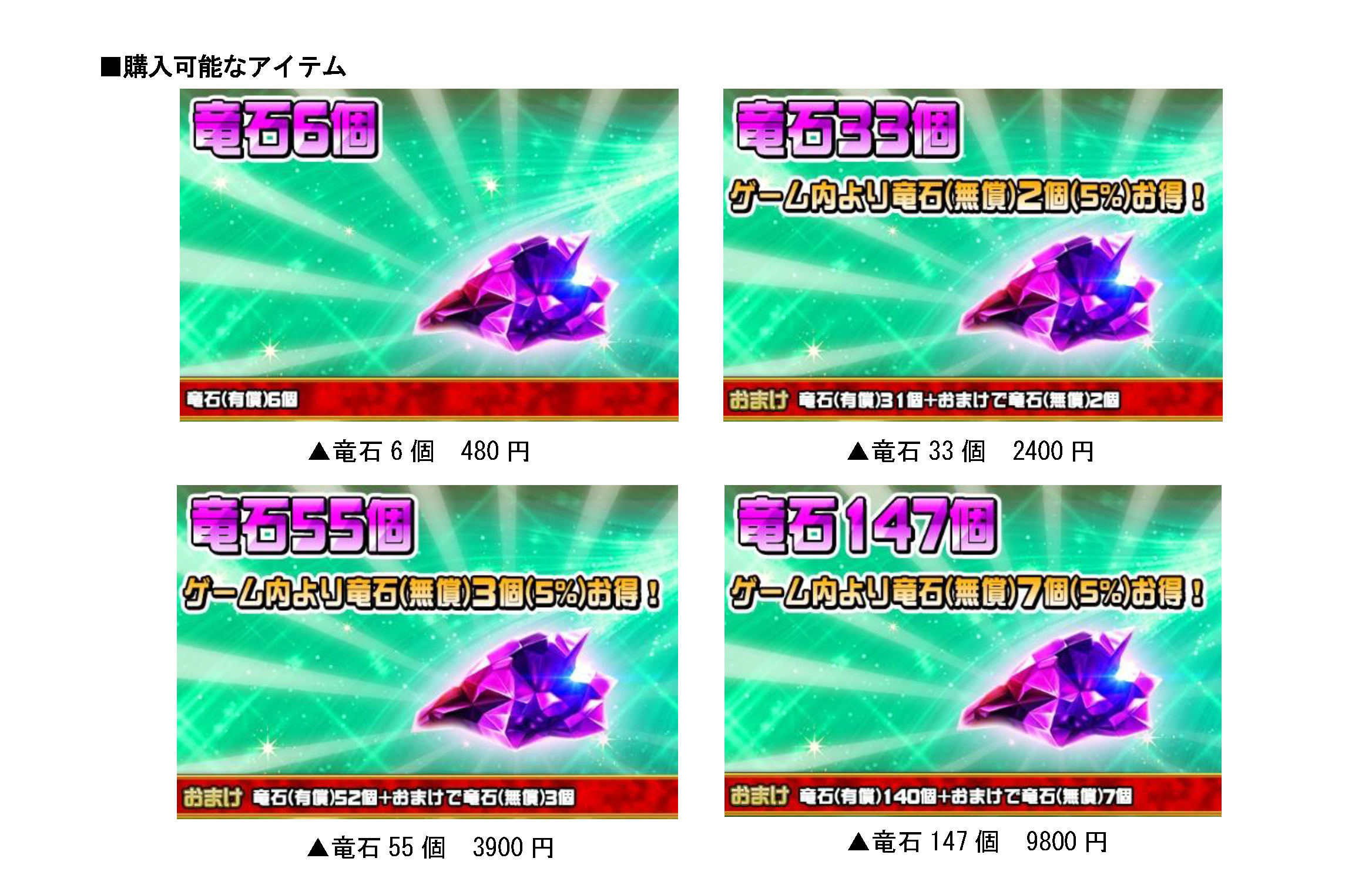 ※購入した竜石は、アプリのログイン後に反映されます。反映されていない場合にはアプリの再起動をお試しください