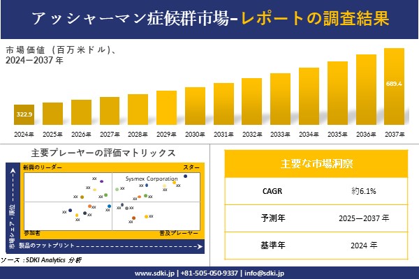 SDKI Analytics(本社:東京都渋谷区)は、このたび、2025年06月27に「アッシャーマン症候群市場調査レポート:2025-2037年の市場規模、シェア、傾向の予測」を発表しました。アッシャーマン症候群に関する市場調査レポートには、統計的及び分析的アプローチを使用した予測評価が含まれています。この調査レポートでは、一次及び二次調査方法を使用して分析された主要な業界洞察を通じて将来の傾向を理解できるようにすることで、主要な市場動向を読者に説明しています。