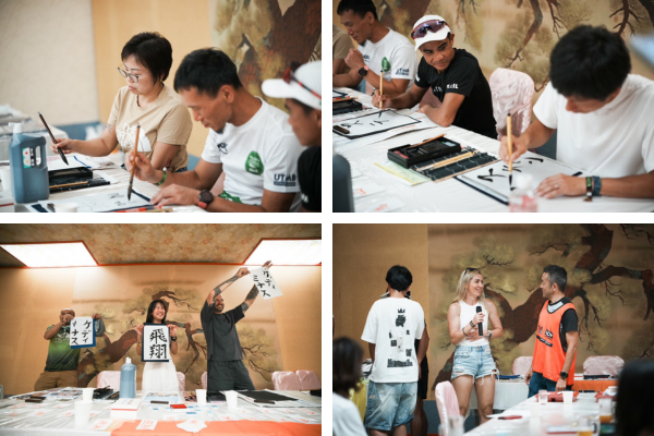 ランチだけでなく、書道教室が開催され、非常に達筆な川崎選手の手ほどきを受け、海外選手らが名前や好きな漢字などをしたためました。石原選手による浮遊フォトショットのセッションも実施。浮遊写真のコツを教わりながら写真撮影に挑戦しました。