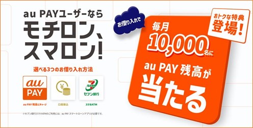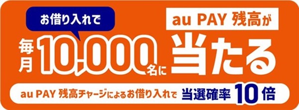 なお、au PAY 残高チャージによるお借り入れは当選確率が10倍となります。