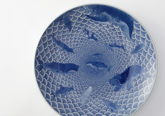 巧みな筆づかいの染付、伝統技法の置き上げ、長崎の鯨の文化が溶け込む鯨モチーフ。光雲窯ならではの三川内焼をお愉しみください。 工芸WS・実演 7/19(土)・20(日)