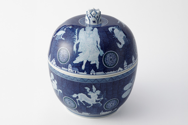 巧みな筆づかいで細い線を駆使して描いた、古典的な山水や獅子、龍。鯨の文化が溶け込む長崎の風土ならではの鯨のモチーフ。そして数十年ぶりに再現した「置き上げ」。この窯元ならではの技術が、みかわち焼の伝統を伝えると同時に、ひと目でわかる独自の器を生み出しています。