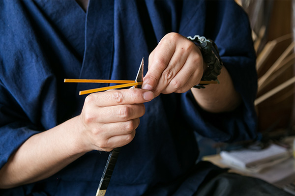 「みやび行燈製作所」の会長・杉山雅泰さんの三男。高校卒業後、大阪の雛人形店で6年間接客を学び、その後「駿河竹千筋細工」の伝統工芸士・渡邊鉄夫さんに師事。長男(社長)、次男(専務)とともに、職人として家業を継ぐ。また、製作活動に留まらず、竹林管理や道具作りなど、工房を支える様々な職人の後継者問題とともに、次世代へと繋ぐ発信や新しい試みに挑む。