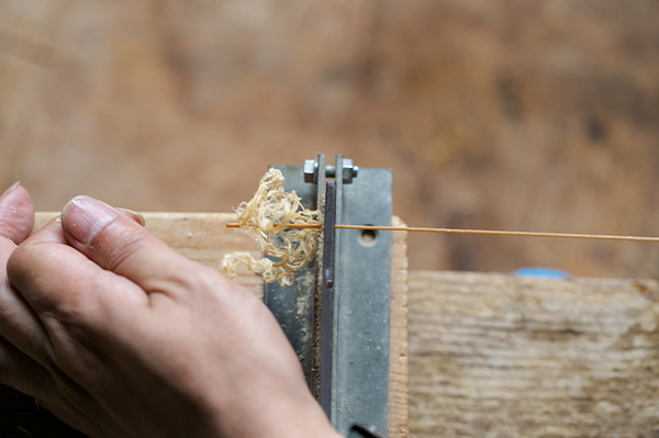 期間中は、みやび行燈製作所の 駿河竹千筋細工 伝統工芸士・杉山 茂靖さんをお迎えし、熟練の手技により、1cmの竹から0.8mmの極細の丸ひごになるまでの工程、こちらの材料づくりをお見せします。手間暇を惜しまない職人技を、是非この貴重な機会に、間近でご覧ください。