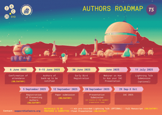 日本時間2025年3月8日早朝の申請締切までに全世界95カ国から約6400本の論文が申請され、2025年4月25日に各論文の審査結果が発表されました。そして、今回2025年6月6日まで追加で再審査募集が行われ、2025年6月19日にその結果が発表され、新たに1本の論文アブストラクト「民間宇宙事業創造教育訓練機関ASTRAX ACADEMY 2025」が審査を通過しました。