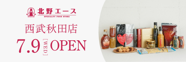 食料品専門店「北野エース」を運営する株式会社エース(東京本部:東京都江東区、関西本部:兵庫県尼崎市、 代表取締役 社長執行役員:油山 哲也)は、「北野エース 西武秋田店」を7月9日(水)オープンいたします。